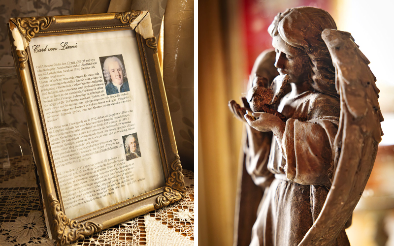 Rum för rum har renoverats, tapetserats och möblerats. Erik är målarson och har haft full huggning med att återställa den forna glansen på väggar och tak. De åtta rummen i huvud-byggnaden har fått namn efter gäster som passerat byns gästgiveri. Kungar och Carl von Linné naturligtvis, men även gästgiveriets tidigare ägarinna Katarina Nordin som vid det förra sekelskiftet, med tveksamt resultat, var först i Nordmaling om att servera glass.