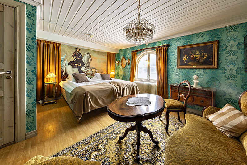 Rum för rum har renoverats, tapetserats och möblerats. Erik är målarson och har haft full huggning med att återställa den forna glansen på väggar och tak. De åtta rummen i huvud-byggnaden har fått namn efter gäster som passerat byns gästgiveri. Kungar och Carl von Linné naturligtvis, men även gästgiveriets tidigare ägarinna Katarina Nordin som vid det förra sekelskiftet, med tveksamt resultat, var först i Nordmaling om att servera glass.