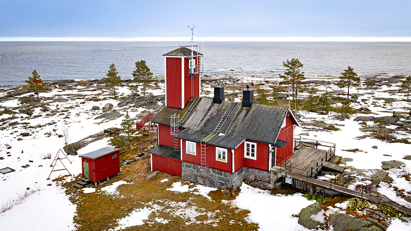 Efter rundturen tar vi plats i bilen för en kort utflykt till Järnäsklubb där länets första lotsplats inrättades 1725, och lades ner 1967. Lotsstugan köptes 2011 av Järnäs byalag och arrenderas i dag av Erik och Erika – nu med tre gästrum och ett välutrustat självhushållskök. En trappa upp väntar sköna fåtöljer och vidsträckt utsikt i lotsarnas utsiktstorn. Utanför dörren leder en delvis översnöad stig ut på klipporna som omger stugan, förbi glesa tallar och runda stenar, ner mot en dyning som frasar mot strandens småstenar.