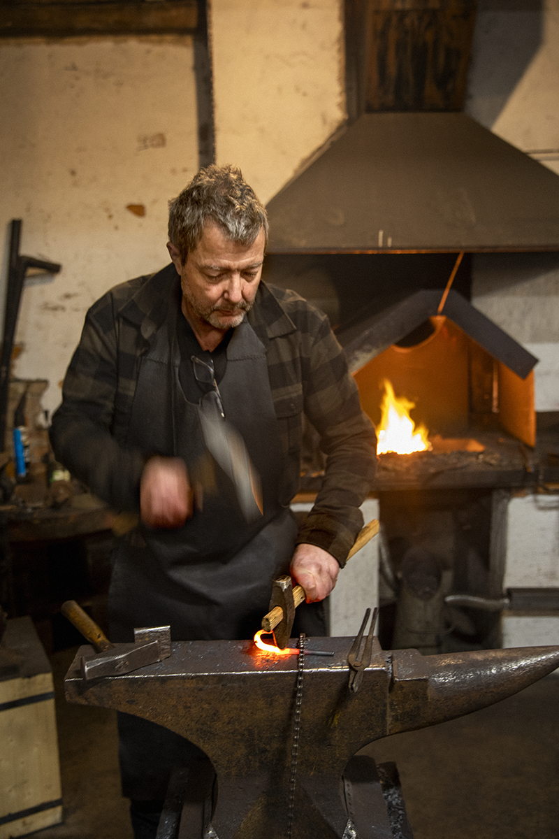 flera matstånd har slagit igen. Tunnbrödet från Rättvik sålde slut redan vid tvåtiden. Men här finns mer än den tillfälliga marknaden. Smeden Igge Grau är en av dem som huserar på gruvans område året runt. I butiken finns ljusstakar, klädhängare, smycken … Det mesta av järn, platsen till trots. Vid ännu en eld ser vi Igge Grau hetta upp järnet till tusen grader för att sedan forma det glödande materialet. Andlösa barn med godisstrutar i händerna följer den magiska förvandlingen.