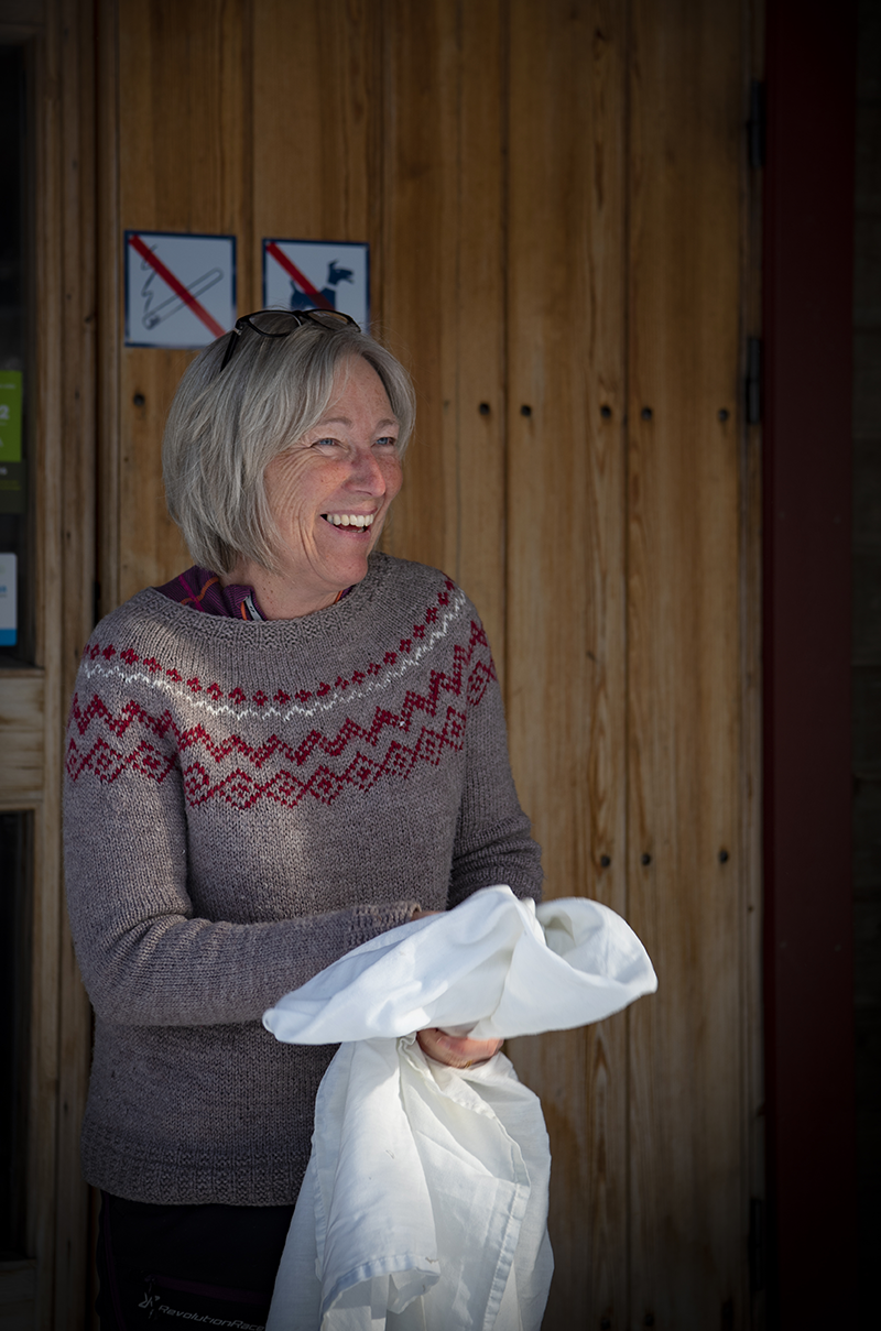 Hon tar hand om besökare, skottar snö och sköter om de nio stugorna där de första byggdes på 1960-talet. Anläggningen ägs av Postnords personalstiftelse. Postanställda har länge semestrat här, men anläggningen är öppen för alla.