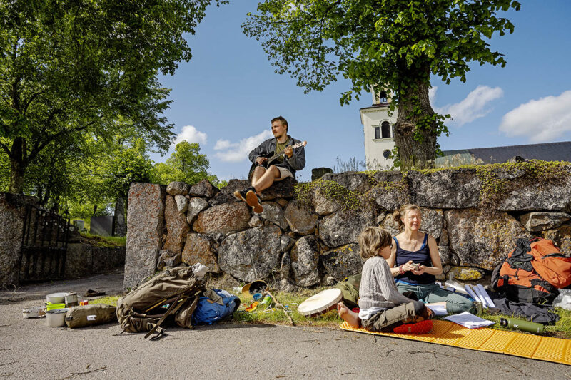 Det är sista veckan i maj, Kristihimmelsfärdshelg och snart stundar hänryckningens tid. De östgötska rapsfälten är fortfarande guldgula och syrenhäckarnas blomsterklasar sprängfärdiga. Vi är på luffen. Ska bara gå omkring och se var vi hamnar och hur långt vi kan gå. Det blir ett familjeäventyr på hög nivå – äldsta grabben kånkar på sina gitarrer, mamman bär på en trumma och lillkillen har sin vandringsstav.