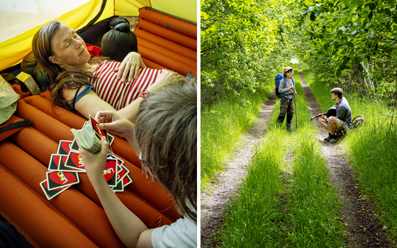 Vi vaknar av att det regnar, precis som prognosen sa. Men det lugnar sig snart och fåglarna hälsar godmorgon utanför tältet. Hela försommarkören stämmer upp och jag tar upp min app för att särskilja dem … bofink, koltrast, talgoxe, härmsångare, lövsångare, större hackspett, svarthätta, taltrast, svartmes, trädpiplärka, kungsfågel, rödhake och så göken som gal. Under natten drog morkullan sitt stråk över tältet ackompanjerad av råbockens skällande. Vi ligger och drar oss länge och lyssnar på symfonin.